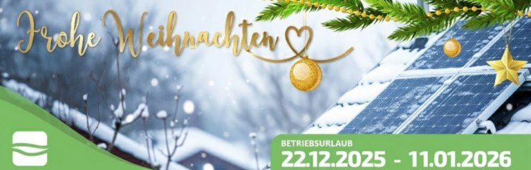 Ab Montag, dem 12. Januar 2026, sind wir wieder wie gewohnt für Sie da und freuen uns darauf, gemeinsam mit Ihnen nachhaltige Energielösungen umzusetzen.