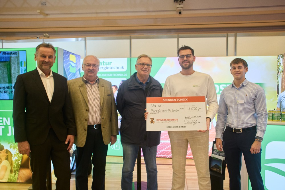 Auf der „Mein Zuhause!“-Messe in Weiden am 12. und 13. Oktober 2024 gelang es der Natur Energietechnik GmbH zusammen mit Messebesuchern, eine Spende von 1.000 Euro für die Kinderkrebshilfe zu sammeln. Dieses Engagement verdeutlicht, dass Natur Energietechnik Nachhaltigkeit nicht nur in Form von umweltfreundlicher Energieerzeugung sieht, sondern diese auch als Verpflichtung für die nächste Generation versteht. Für das Unternehmen steht fest: Die Gesundheit und Zukunft der Kinder liegt ebenso in unserer Verantwortung wie der Schutz unseres Planeten. Das gesammelte Geld soll Projekte unterstützen, die krebskranken Kindern und ihren Familien in dieser schwierigen Zeit helfen.